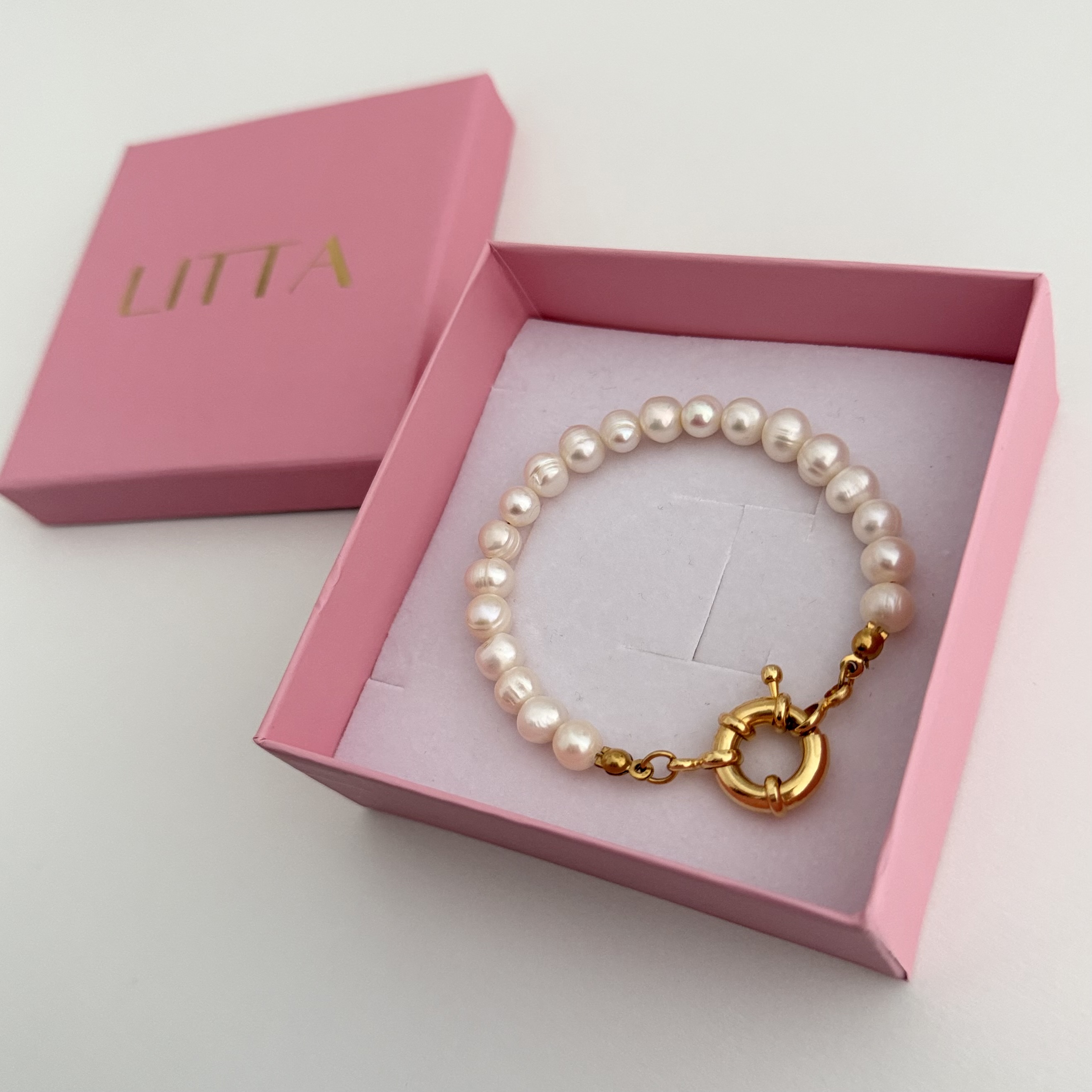 Savršena za svaki dan ili posebne prilike, ova narukvica kombinuje klasičnu eleganciju bisera sa modernim i izdržljivim detaljem od nerđajućeg čelika. Idealna za poklon ili kao dodatak vašem omiljenom outfitu. Materijal: prirodni biseri Kopča: nerđajući čelik Dužina: 18cm Izrada: ručni rad Narukvica dolazi u brendiranoj poklon kutiji. Za dugatrajan sjaj, preporučujemo da izbegavate kontakt sa hemikalijama, parfemom i vodom. Čuvajte u originalnoj kutiji kada je ne nosite.