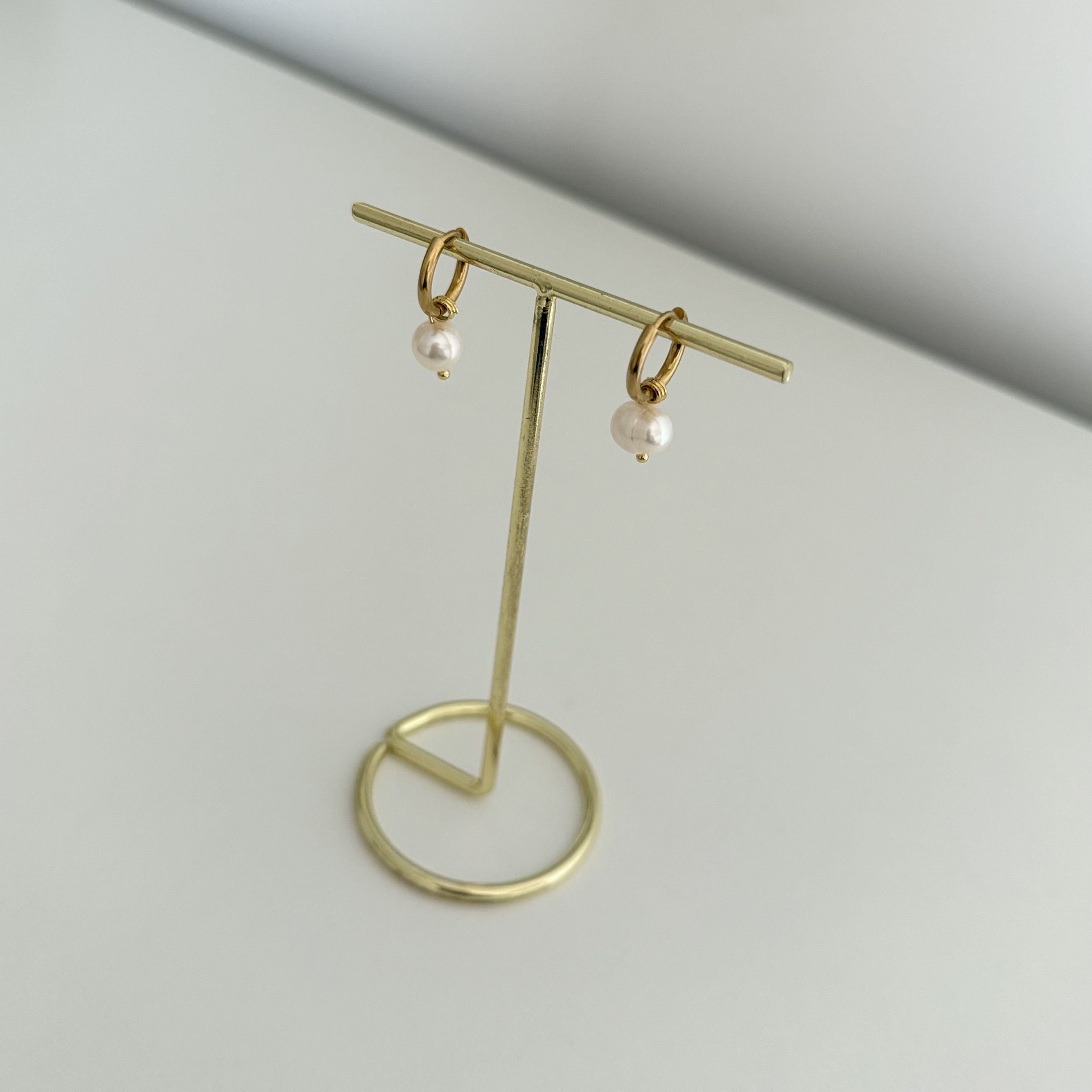Klasične zlatne alke sa prirodnim biserom koji nežno visi.
