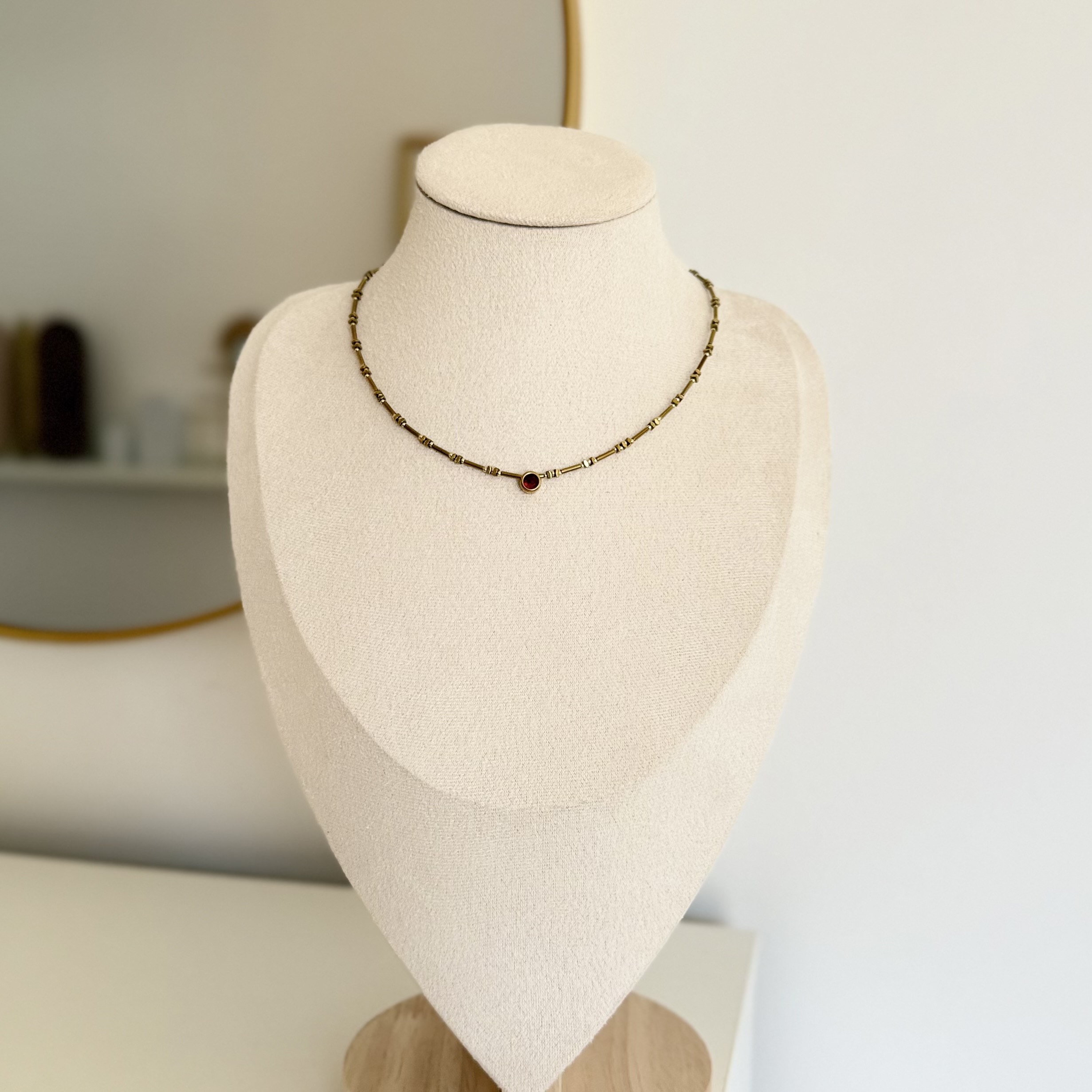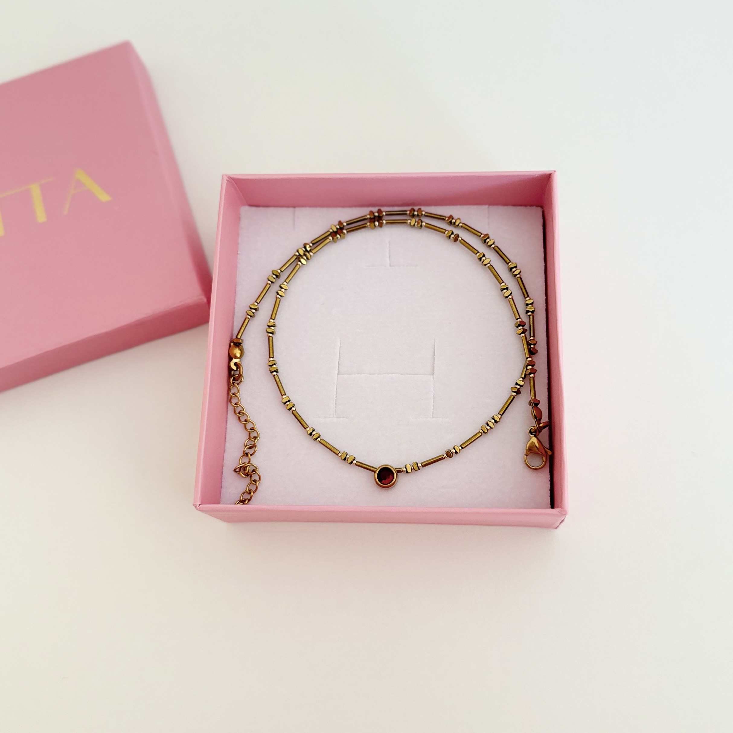 Ogrlica od zlatnog hematita sa crvenim cirkonom