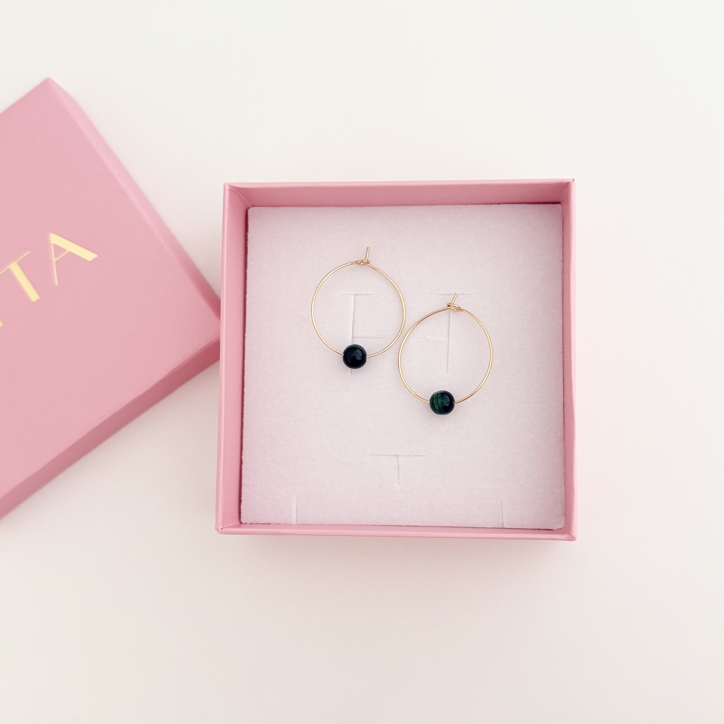 Za žene koje vole suptilnu eleganciju i jedinstvene detalje, ove čelične alke sa malahitom savršeno kombinuju snagu i lepotu. Njihov smaragni sjaj se prelepo slaže sa ogrlicom i narukvicom iz iste kolekcije, stvarajući harmoničan i sofisticiran set za svaki dan ili posebne prilike. Materijal: nerđajući čelik i malahit Prečnik alki: 2,5 cm Izrada: ručni rad Minđuše dolaze u brendiranoj poklon kutiji.