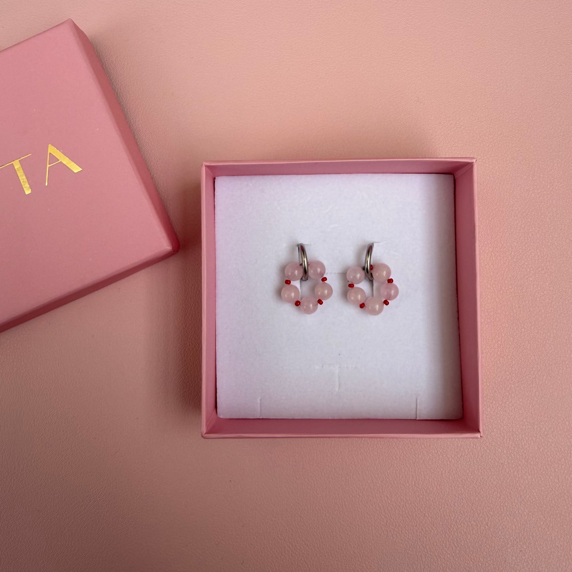 Ove minđuše izrađene su od kvalitetnog čelika koji ne menja boju i otporan je na svakodnevno nošenje. Ono što ih čini posebnim jeste privezak od rozenkvarca koji se po želji može skinuti – tako minđuše možeš nositi na dva načina. Sa priveskom – romantično, ženstveno i nežno. Bez priveska – minimalistički, svedeno i moderno.