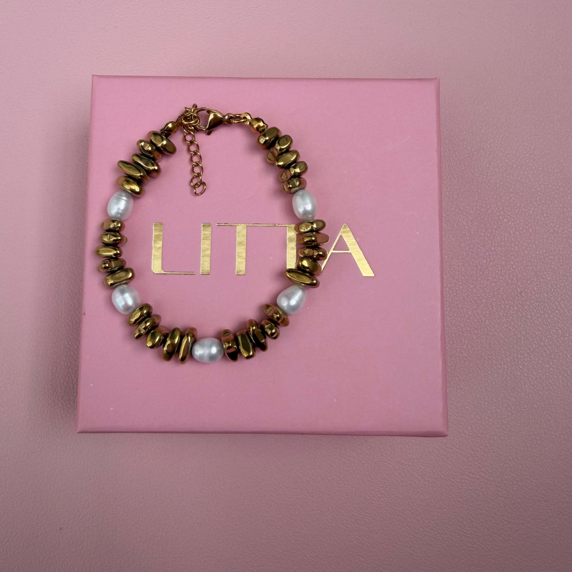 Narukvica od zlatnog hematita sa slatkovodnim biserima