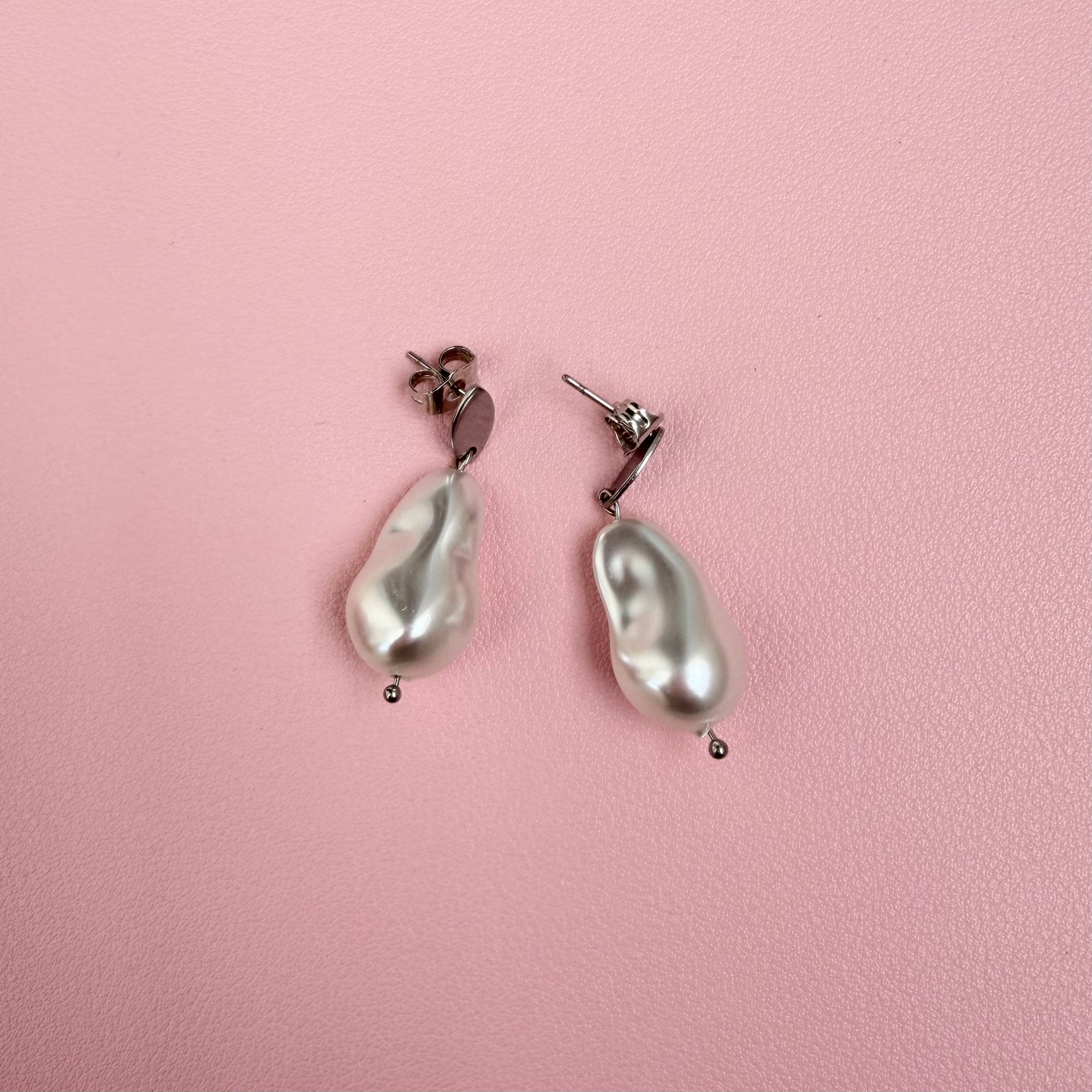 Modernе viseće minđuše izrađene od nerđajućeg čelika u srebrnoj boji, sa detaljem staklenog bisera koji im daje nežan i sofisticiran izgled. Lagane, elegantne i otporne, savršene su za svakodnevno nošenje.