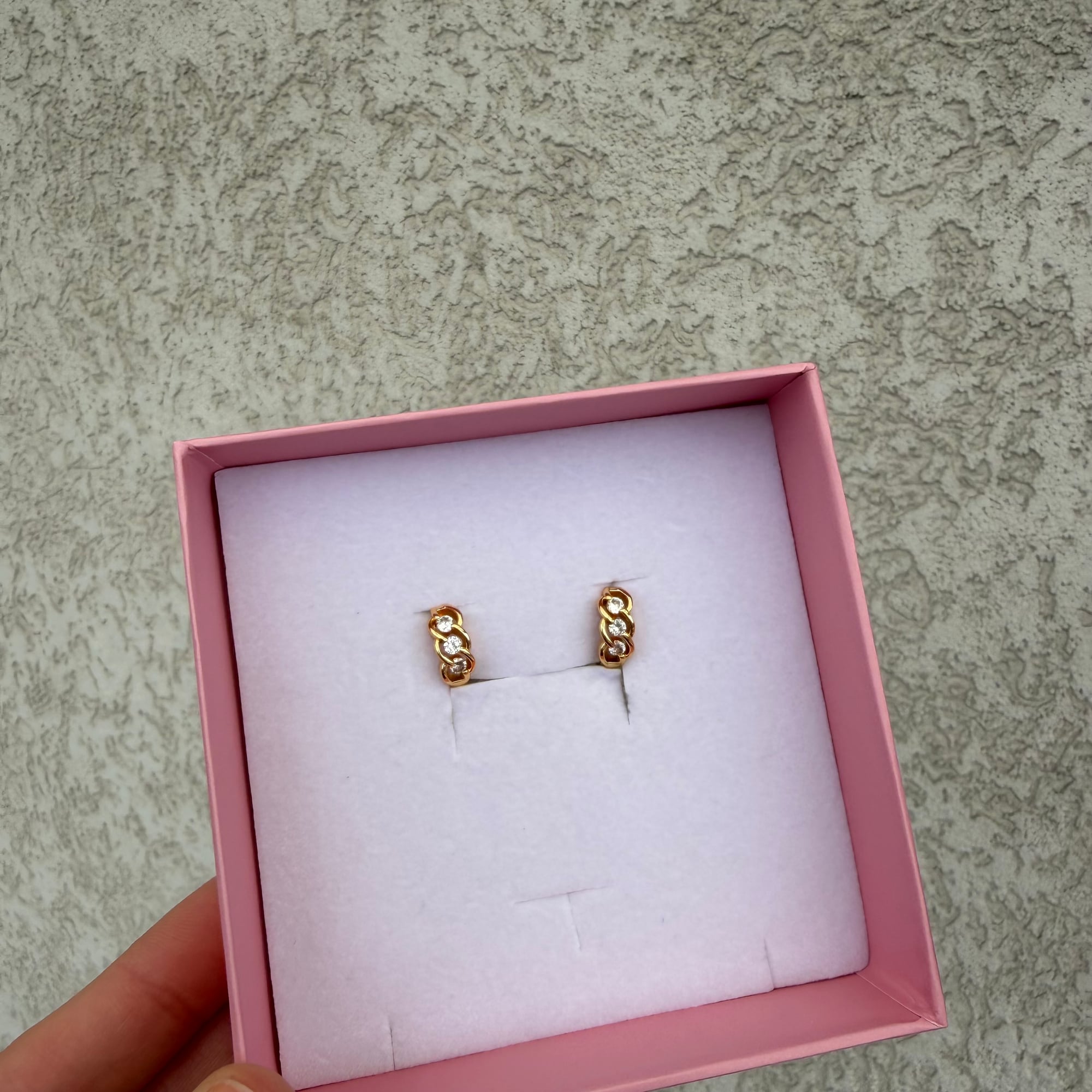 Elegantne minđuše ukrašene cirkonima, sa sigurnim i praktičnim kopčanjem. Sjaj cirkona daje sofisticiran izgled, dok zlatna boja doprinosi toplini i eleganciji celokupnog stila.