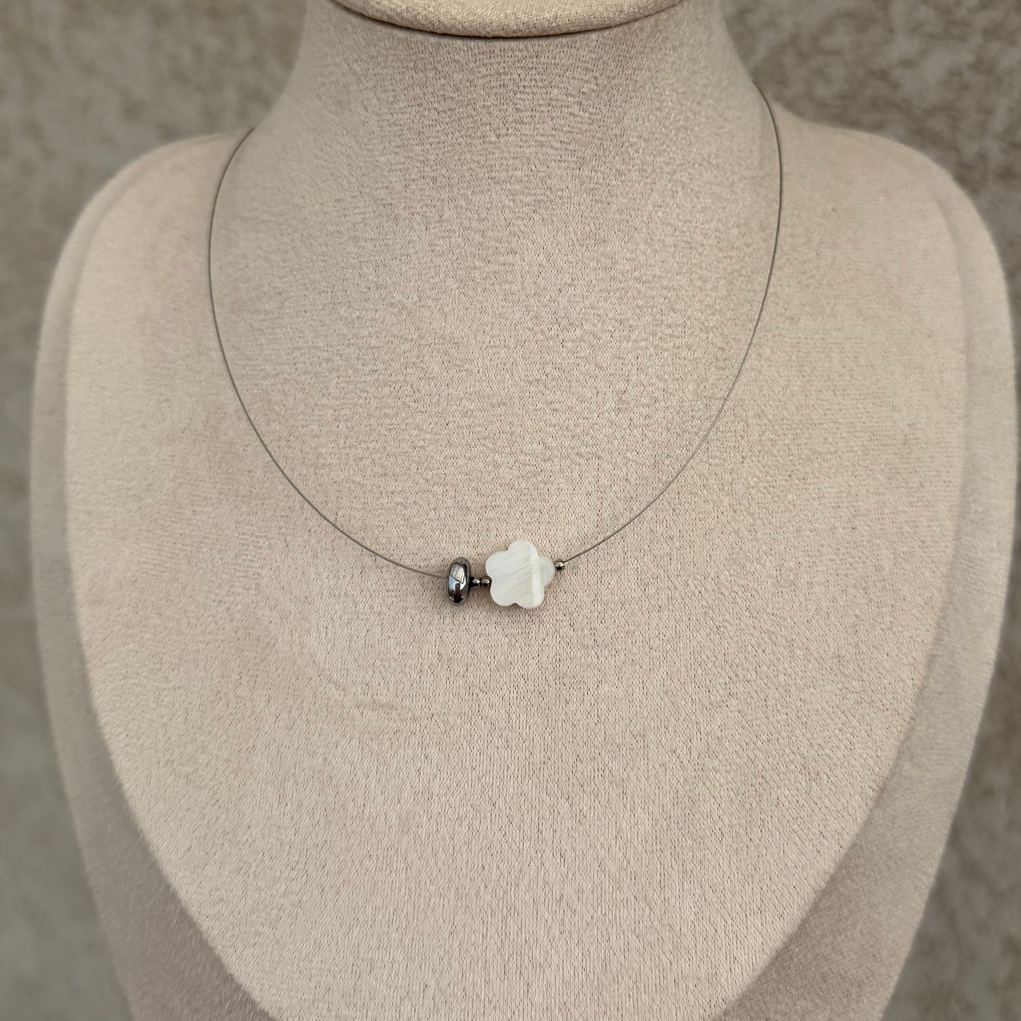 Sedef je poznat po svom blagom, prelivajućem odsjaju koji reflektuje svetlost na poseban način, dok cvet simbolizuje nežnost, rast i novu energiju. Zahvaljujući kvalitetnom čeliku, ogrlica je otporna na vodu i ne menja boju, pa je idealna za svakodnevno nošenje. Minimalistička, a posebna – savršen detalj koji diskretno privlači pažnju.