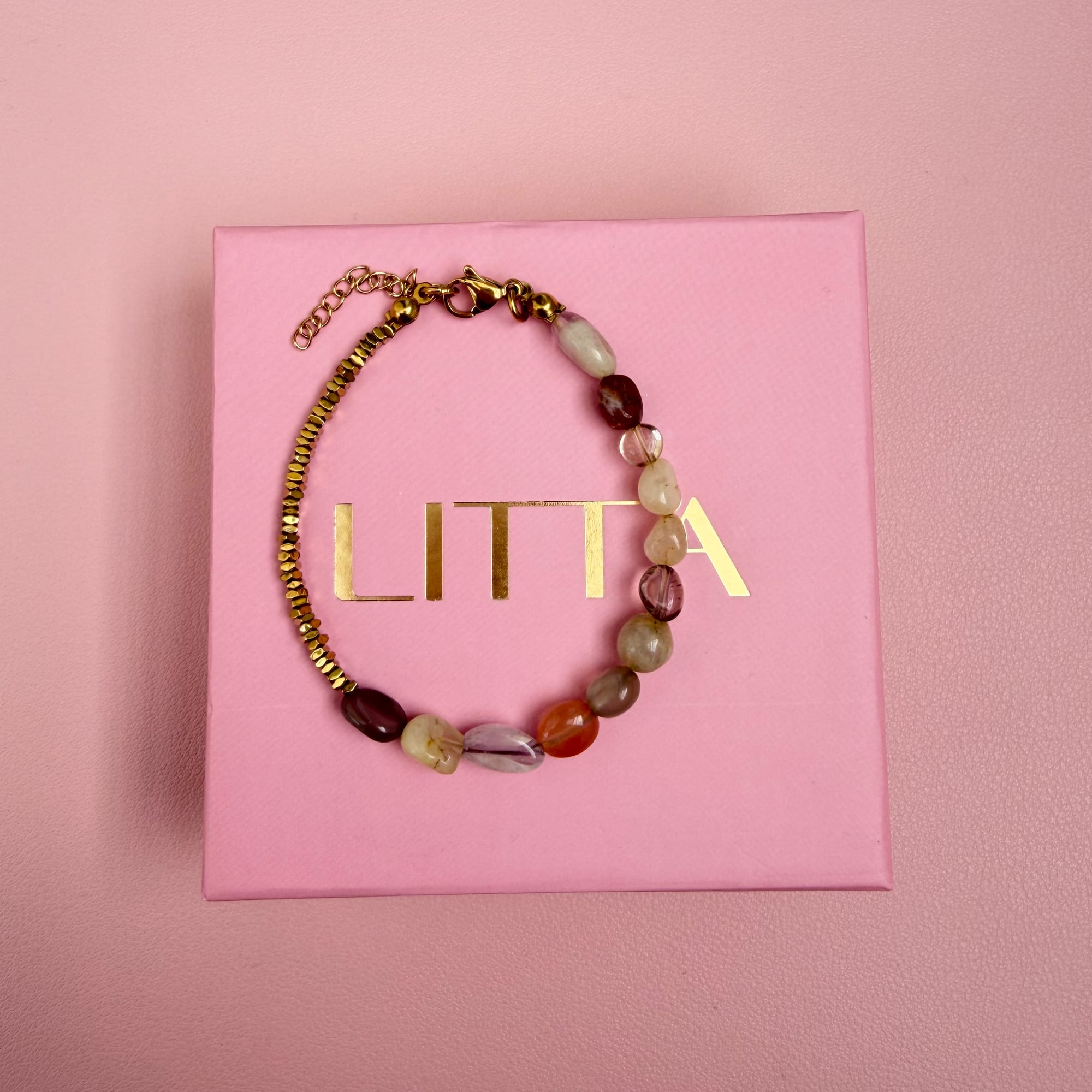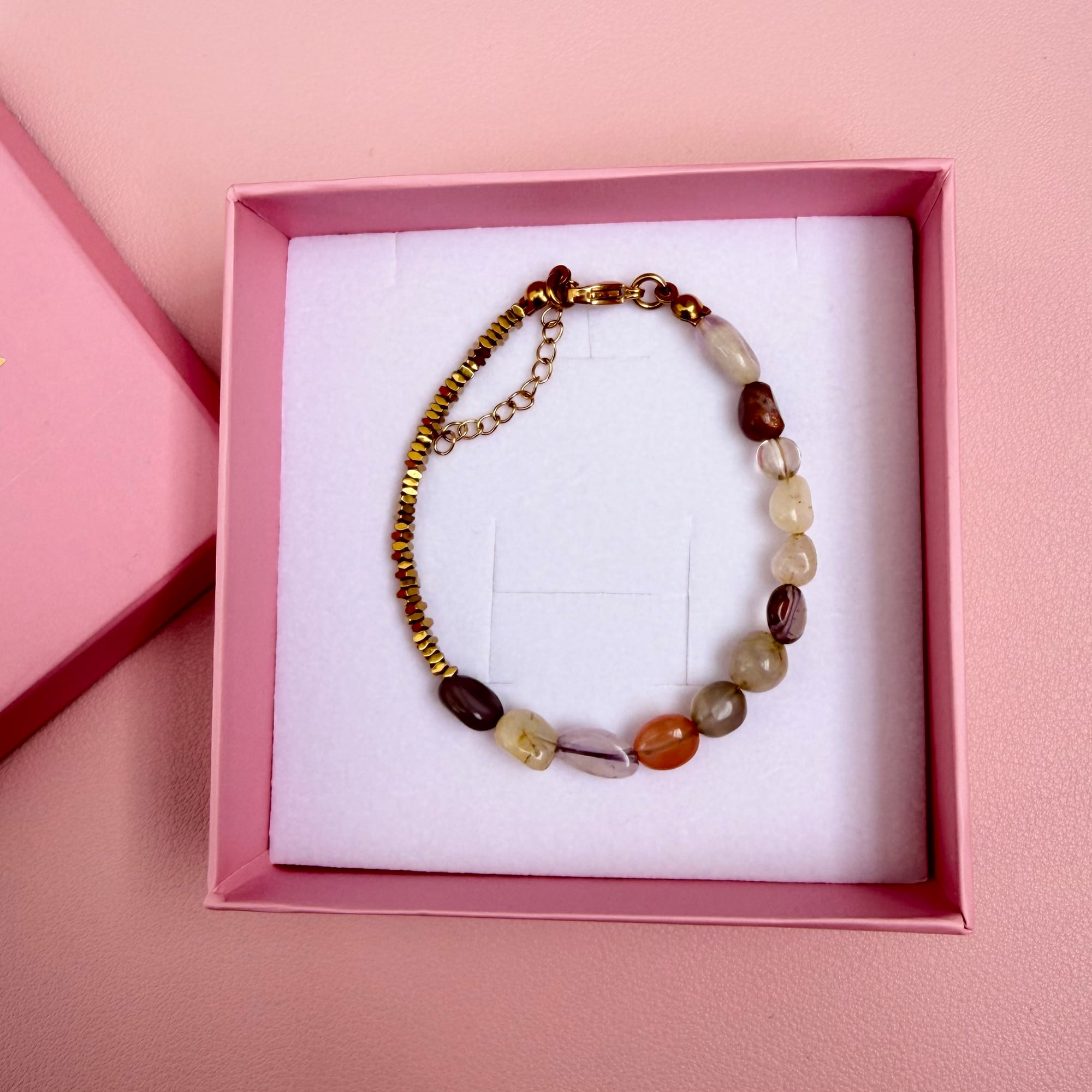 Elegantna i moderna narukvica izrađena od kombinacije zlatnog hematita i pažljivo odabranih mešovitih kristala.