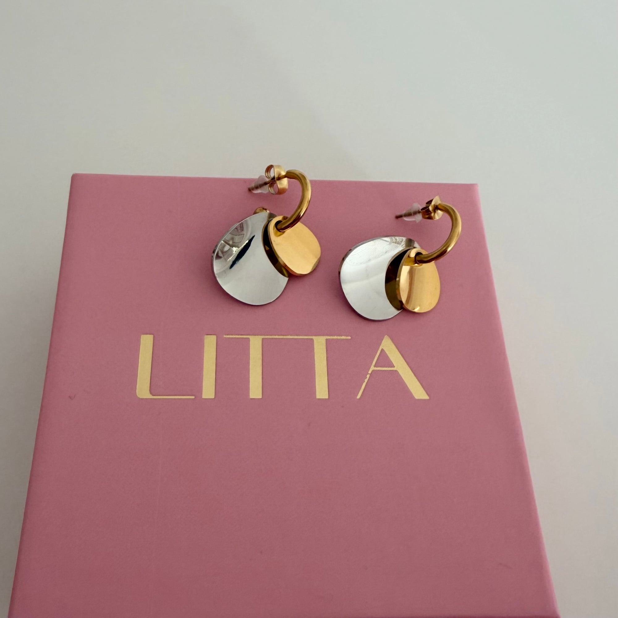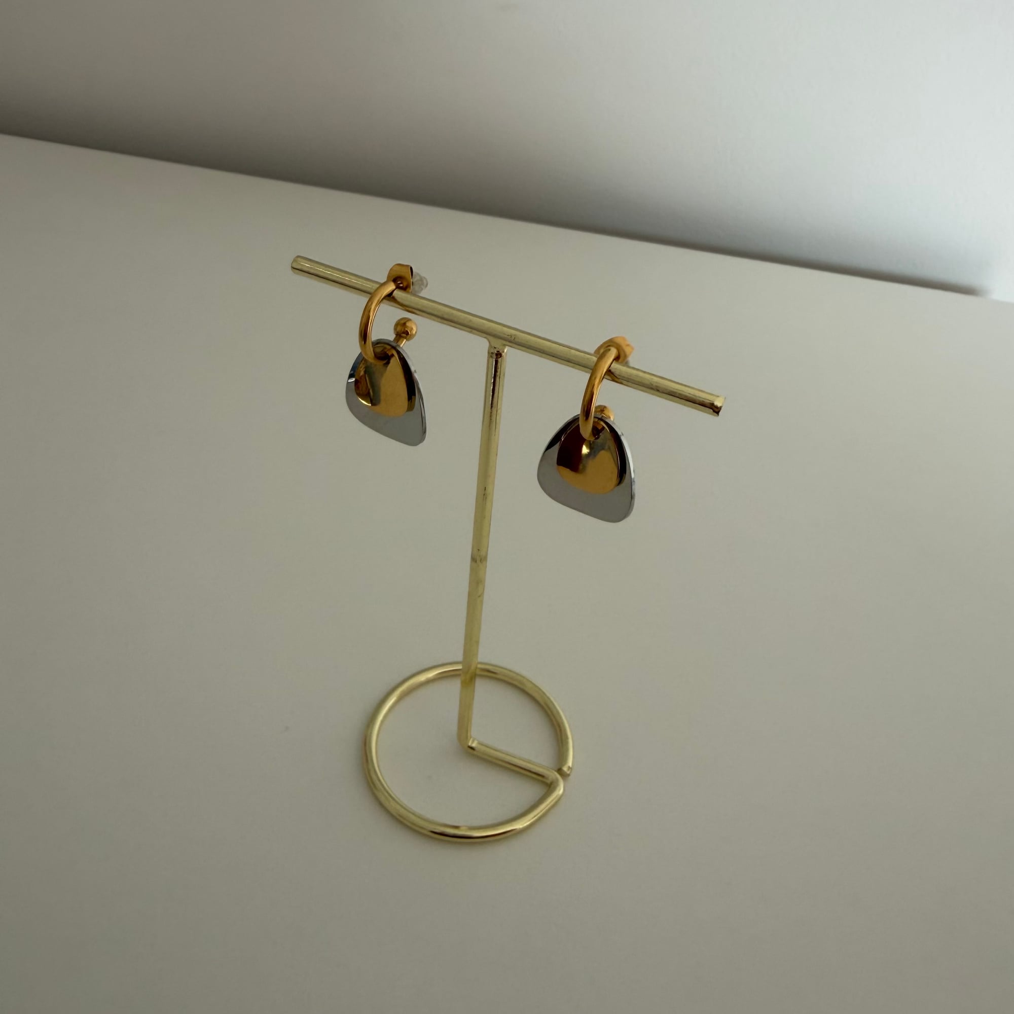 Elegantne i moderne minđuše izrađene od nerđajućeg čelika u efektnoj kombinaciji zlatne i srebrne boje. Dizajn sa dva diskretno preklopljena elementa daje im poseban, sofisticiran izgled koji lako privlači pažnju, a istovremeno ostaje dovoljno sveden za svakodnevno nošenje.
