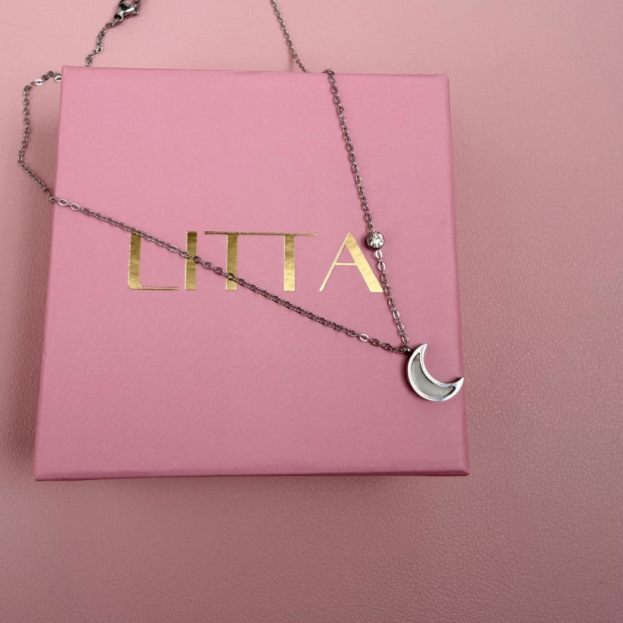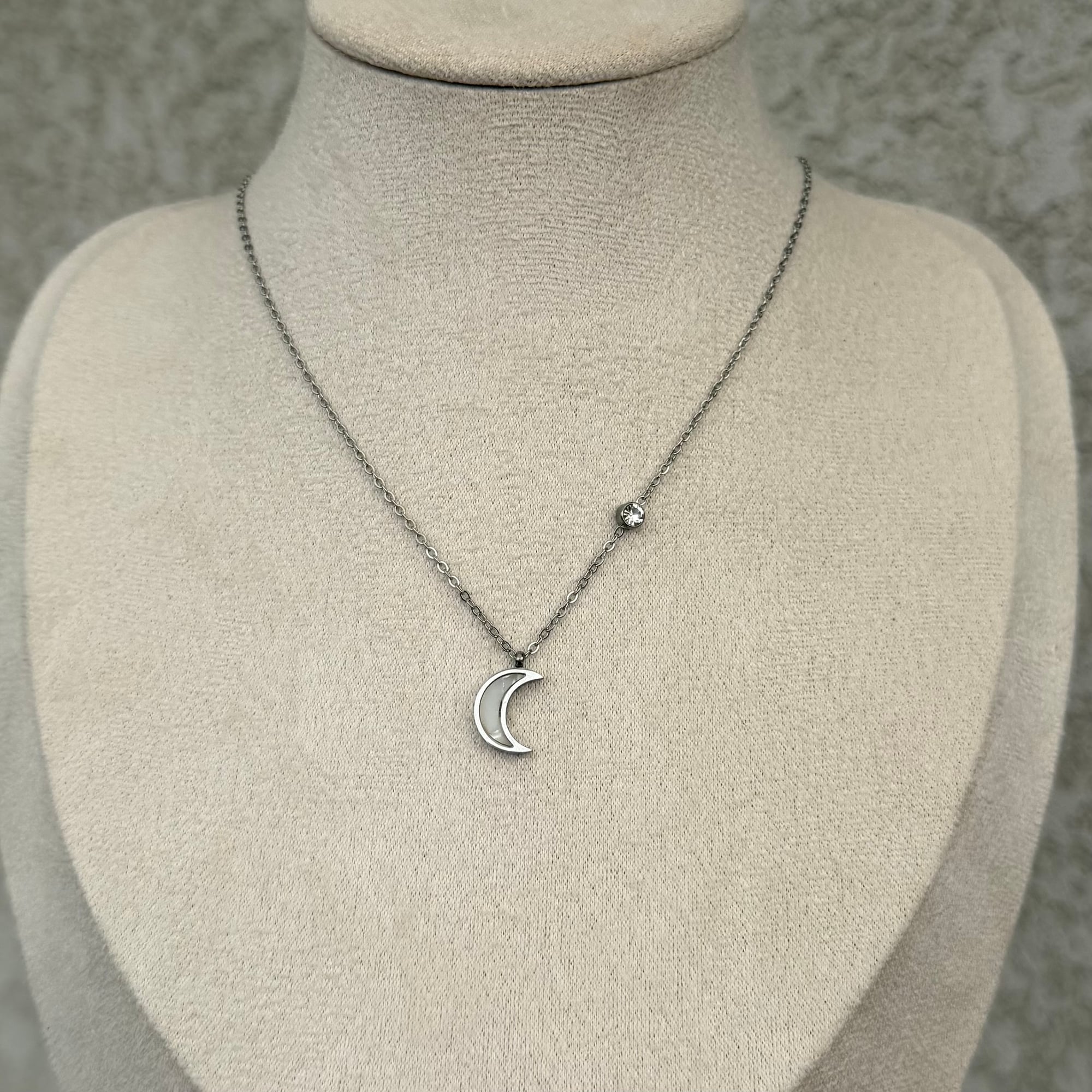 Elegantna ogrlica izrađena od nerđajućeg čelika u srebrnoj boji sa priveskom u obliku meseca i svetlucavim cirkonom koji joj daje poseban sjaj. Motiv meseca simbolizuje ženstvenost, intuiciju i suptilnu eleganciju, zbog čega je ova ogrlica nežan, ali upečatljiv komad nakita.