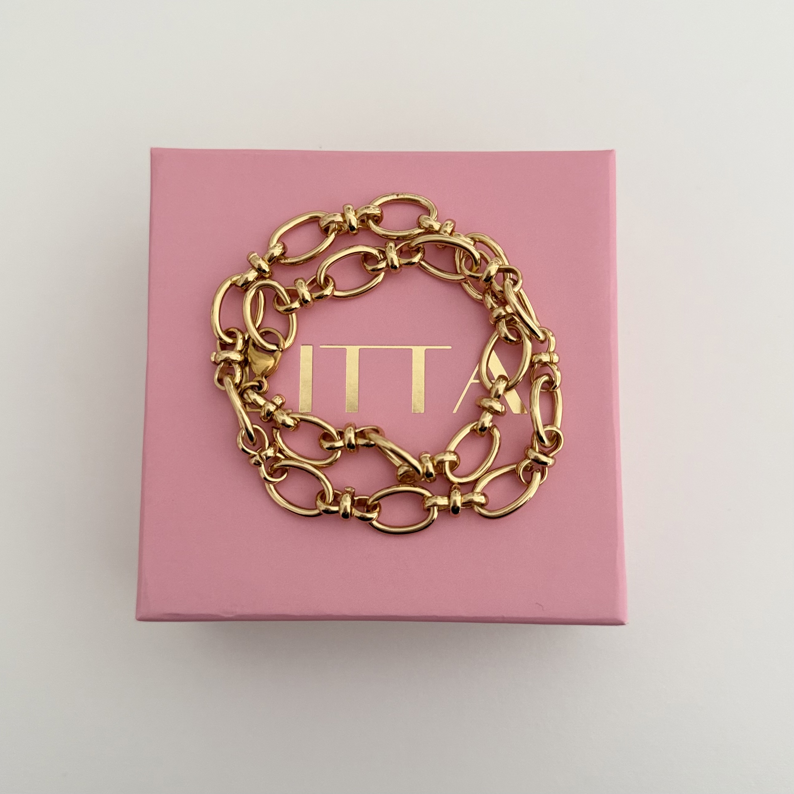 Namenjena je da se nosi samostalno kao upečatljiv komad ili u kombinaciji sa drugim ogrlicama za slojeviti izgled. Bezvremenski komad koji se lako uklapa u svakodnevne i elegantnije kombinacije. Materijal: nerđajući čelik Dužina: 37cm Ogrlica dolazi u brendiranoj poklon kutiji.